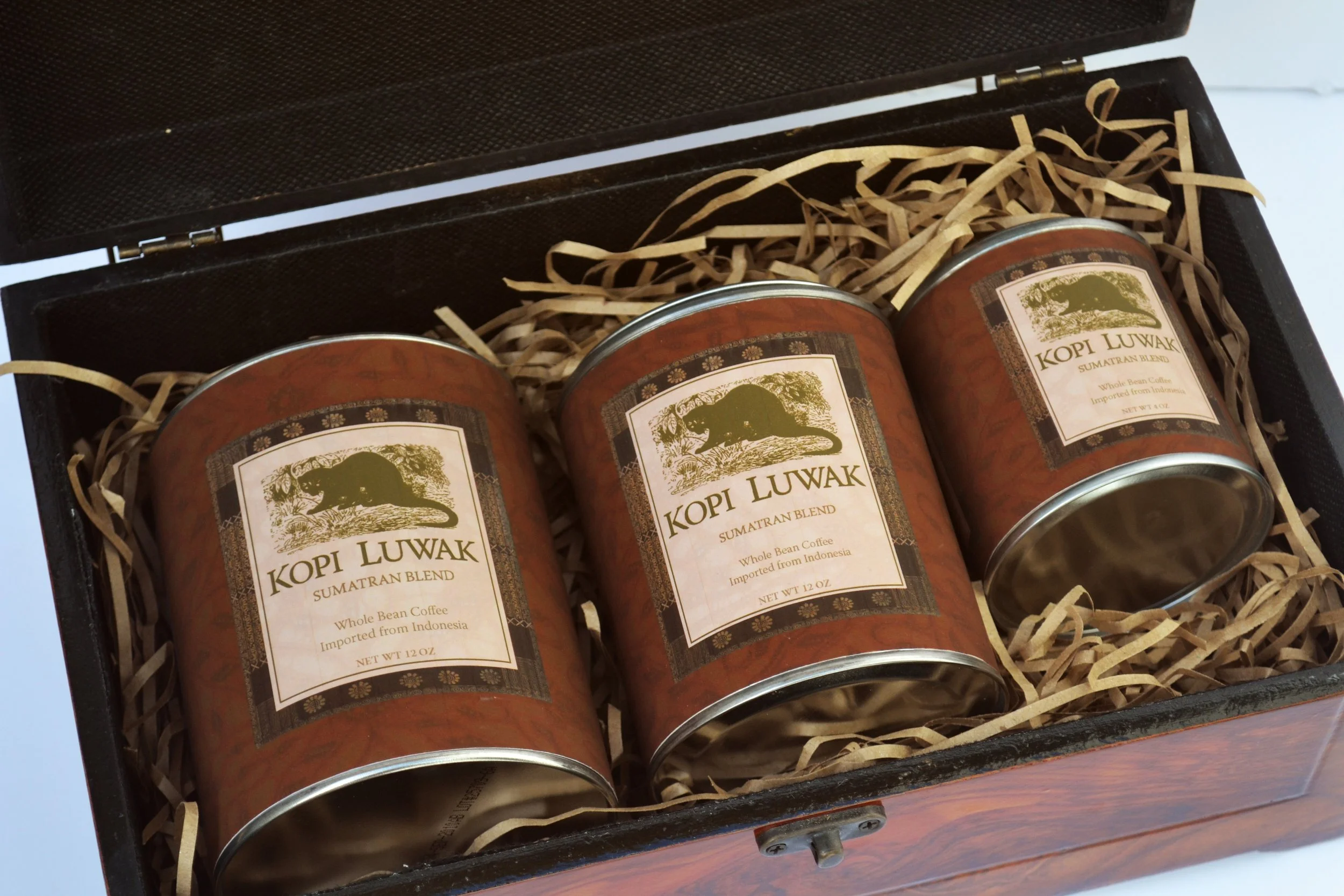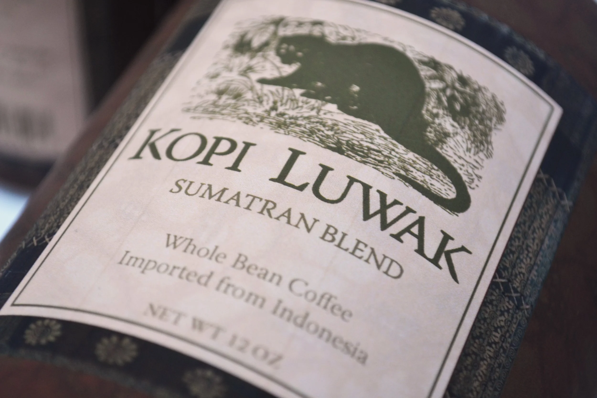 For this project I decided upon using a unique type of coffee that is well known and sold throughout Indonesia and Malaysia called Kopi Luwak. The reason it is so unique is because the coffee is roasted after being digested and pooped out by the Asian Palm Civet. For the design, I used traditional Indonesian Batik print on the can and a woodcut illustration of the Asian Palm Civet for the label.